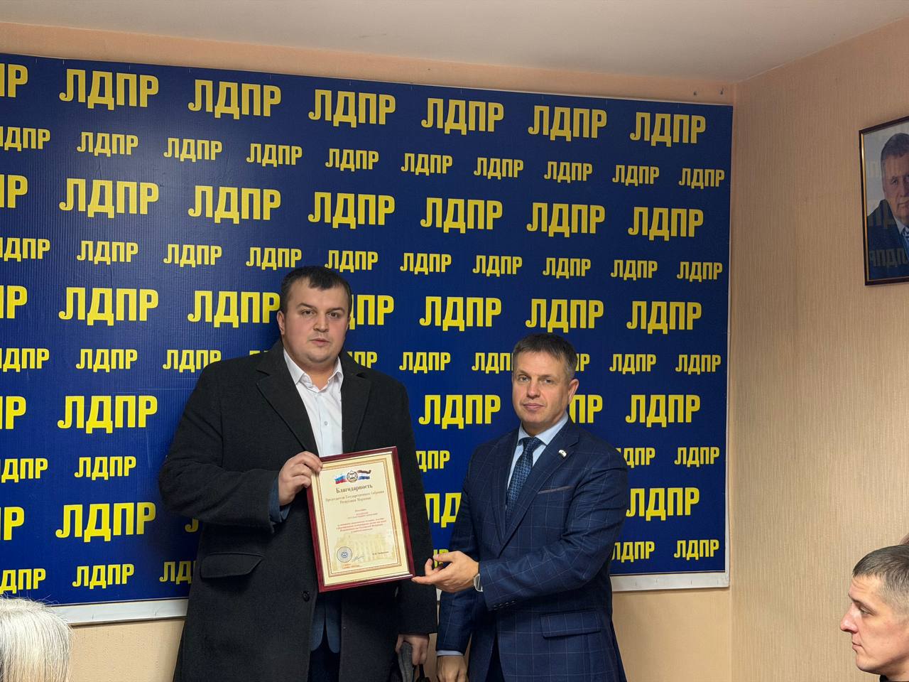 В завершение мероприятия Евгений Тюрин вручил Благодарности от Председателя ЛДПР Леонида Слуцкого тем, кто внес особый вклад в оказание помощи.